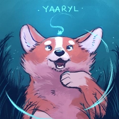 Je suis Yaaryl, autrice et illustratrice. Je crée des univers remplis d'animaux, de créatures fantastiques... et surtout de corgis fantastiques !