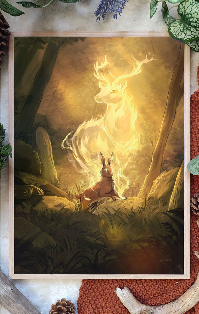Tirage Premium A3 Le Lièvre et le Cerf d'Or