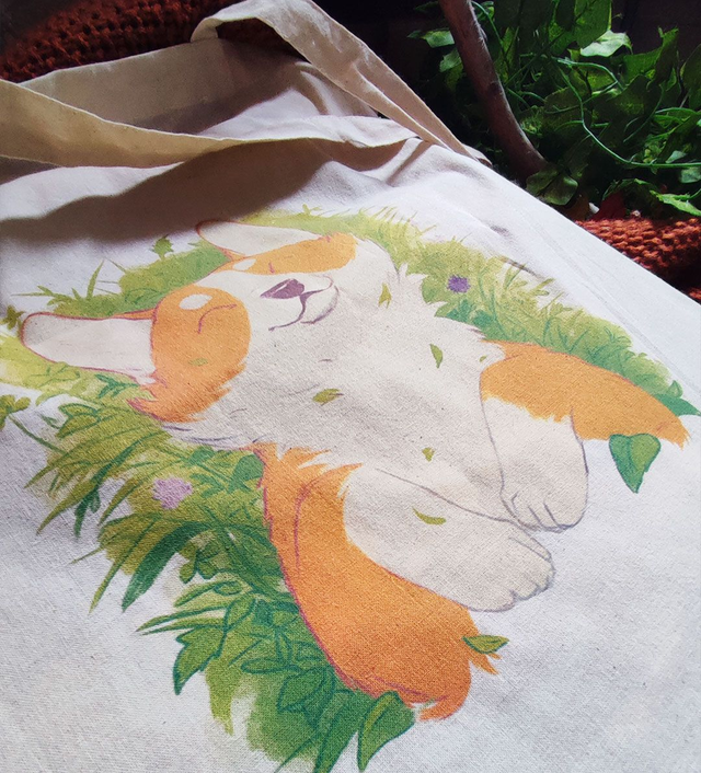Sac en tissus écru avec impression illustration corgi